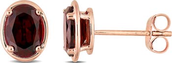 These pretty oval stud earrings are crafted in 14-karat rose gold and feature oval-cut, prong-set garnet gemstones. Enhanced with a high polished finish and secured with butterfly closures, these versatile earrings will coordinate well with a casual as well as formal attire. A timeless piece to add to your collection.