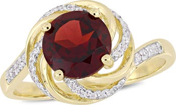 Garnet, White Topaz & Diamond Swirl Ring