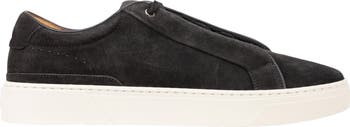 Debossed logo detailing adds signature appeal to a low-profile suede sneaker grounded by a traditional cupsole.