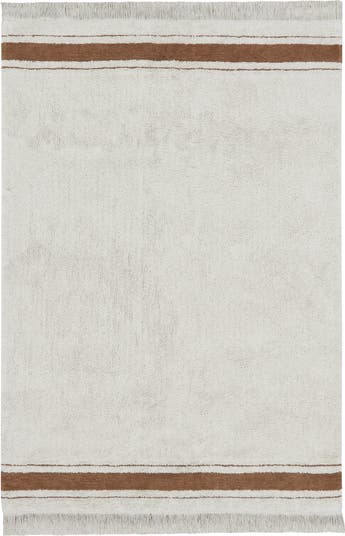 Avoid spills and stains with a plush rug featuring a recycled-textile base, fringe trims and neutral stripes that's machine washable for easy cleanups.