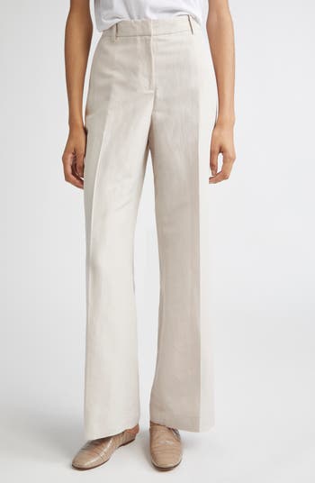 Crisp creases accentuate the trim, tailored aesthetic of full-length straight-leg pants cut from the label's refined silk-linen fabric that offers soft drape and an airy feel.