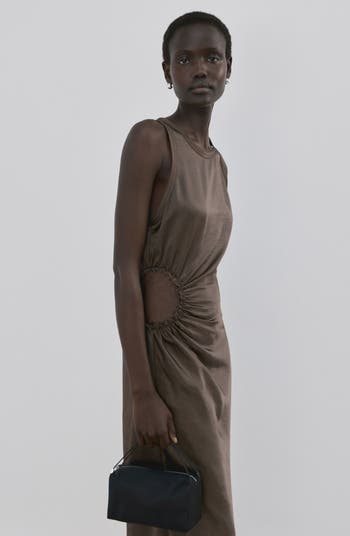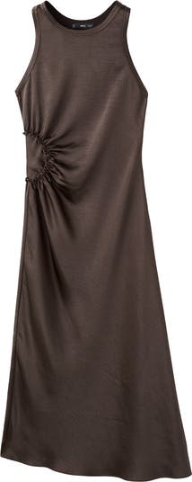 Rippled ruching textures and shapes the silhouette of this figure-skimming maxi accented with an airy side cutout.