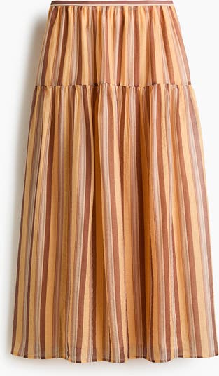 Long, loose-fit skirt in woven fabric made from a lyocell blend. Features a high waist with a concealed zip and hook-and-eye fastener at one side, and a gathered seam at the hips for added volume. Lined.
