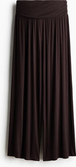 Loose-fit trousers in stretch viscose jersey featuring an elasticated waist and a wide waistband with gathers at the sides for a draped effect. Dropped crotch and wide legs.