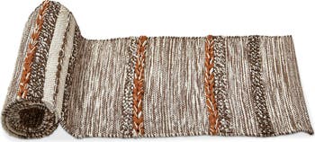- Gathering Textured Cotton Table Runner made of multicolor cotton fabric measures 72 inches long by 14.5 inches wide.