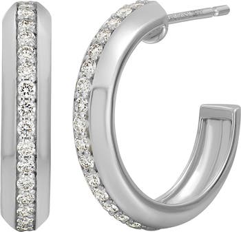 Bring eye-catching sparkle to your ensembles with the 34 pavé diamonds lining the curves of these exquisite hoop earrings handcrafted from 18-karat white gold.
