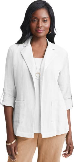 Top off your outfits with a jacket you can ease into. Breezy cotton gauze fashioned into a relaxed silhouette with three-quarter, roll-tab sleeves. Pair with our Wide Leg Gauze Pant for a chic, coordinated look.
