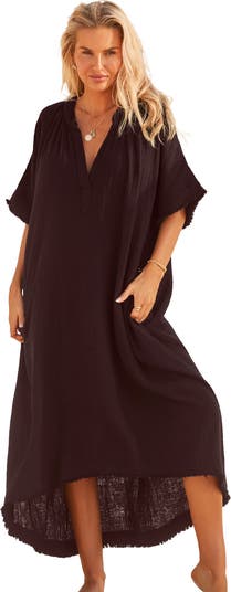 Effortless style as cool as the ocean breeze, is as easy as slipping on our Sun Breeze dress cover up, designed with our special lightweight, breathable double gauze cotton. It features a V-neckline and short dolman sleeves. Convenient side seam pockets are perfect for stashing snacks or your sunscreen. Notice how the high-low hem adds to its nonchalant coolness.