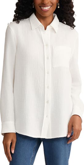 Cut from cotton gauze, this textured longline shirt is finished with a tuckable shirttail hem.