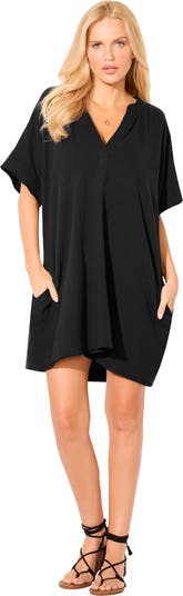 This breezy cotton gauze cover up is the perfect layer for beach days with its soft, lightweight feel and relaxed silhouette. Featuring a classic V-neckline with placket detail, dolman sleeves, and side seam pockets for a touch of everyday practicality. Finished with raw-edge trim for a laid-back, lived-in look.
