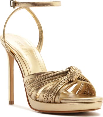A slim ankle strap and lofty stiletto heel amplify the modern glamour of this occasion-ready sandal.