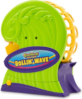 Instantly create a wave of bubbles with Gazillion Bubbles® Rollin’ Wave! With the press of a button this innovative design unleashes an endless flow of bubbles! Simply pour the Gazillion Bubbles solution into the bottom tray, press the “on” button and watch the bubble fun begin. Each Rollin’ Wave includes one 4oz. bottle of premium Gazillion Bubbles Solution. Appropriate for ages 3 years and up. WARNING: CHOKING HAZARD -- Small parts. Not for children under 3 yrs.