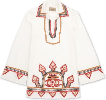 The GEA mini dress is inspired by the A-line dresses of the 70s, with a design that evokes a nostalgic yet modern atmosphere. Crafted from linen with a viscose interior, this piece offers freshness and fluidity, perfect for warmer days. The precious thread embroidery, with four colors that recall folk motifs, adds a touch of originality, maintaining a sophisticated and timeless elegance. The trapeze fit and flared sleeves make this mini dress an intrinsically Folk chic garment, capable of easily adapting to different occasions. Versatile and practical, it can be worn both as a beach item for those looking for an elegant and relaxed style, and in everyday life, for an original look full of personality. On the back, the iconic Fortela stitching with orange thread embodies the philosophy of the brand, which creates each garment to last over time, evolving together with the wearer and carrying with it a piece of history, revisited thanks to the inspiration and vision of Alessandro Squarzi.