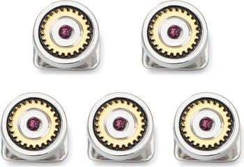 Made with genuine vintage watch parts, these amethyst-centered studs merge engineering and utility with elegance and organic beauty.