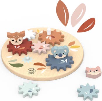 Introducing the Gear Toy! Bring home the Gear Toy to spark your child’s imagination and get their gears turning! This colorful and interactive wooden toy combines fun with foundational learning. Designed for children 18 months and older, it encourages problem-solving, hand-eye coordination, and fine motor development as kids explore how gears spin and interact. The set includes: 3 animal heads 3 large gears 4 small gears Featuring charming, animal-themed pieces in a bright multicolor palette, children will love matching, arranging, and spinning the gears to bring the playful board to life. The interlocking gears are easy to place and rotate, providing hours of screen-free, educational fun. Crafted from FSC-certified wood and painted with non-toxic, child-safe colors, this toy is both safe and sustainable. Its smooth edges and sturdy design make it perfect for curious toddlers. When playtime is over, simply wipe it down with a damp cloth—ready for the next adventure! Specifications Color: Multicolor Recommended Age: 18 months+ Material: FSC-certified wood Size (inches): Diameter: 10.51, Height: 2.76 Weight (lbs): 1.2