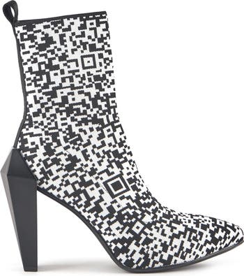 The Gem Bootie Hi is a high-heeled bootie with a leg-hugging sock knit upper. It features a tonal silhouette, a pointed-toe and a distinct gem-shaped block heel. Lightweight matte-finished ABS heel.