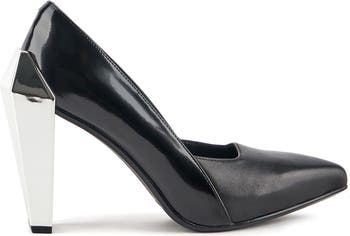 The Gem Pump Hi is a pointed-toe high heel with a sleek colorblock upper and a gem-shaped block heel. It includes a padded heel counter and footbed for added comfort.