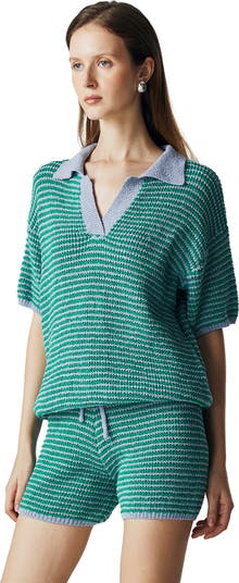 The Gema Knit Set features a relaxed collared knit top paired with matching drawstring shorts, creating an effortless yet elevated look. Made from soft textured knit fabric, it provides both comfort and structure for all-day wear. Perfect for lounging or casual outings, this set can be styled with sneakers for a relaxed vibe or strappy sandals for a more polished touch. Complete the look with minimal gold jewelry or a structured mini bag to enhance its modern and chic appeal.