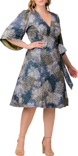 A surplice neckline reveals as little or as much as you want on this fabulous wrap dress that's playfully patterned and framed by bell sleeves.