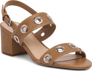 Polished grommet hardware highlights the modern minimalism of this essential block-heel sandal.