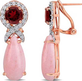 - Options in: Aquamarine with Blue Topaz; Labradorite with Blue Topaz; Pink Opal with Garnet; Amethyst with Garnet