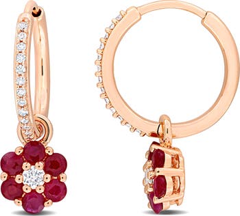 A delightful combination of perfect stones, and sparkling diamonds creates charming floral huggie earrings in 10k gold. Their elegant design exudes sophistication, perfect for adding a touch of romance to everyday style or special occasions. A timeless pair that radiates charm and refined beauty effortlessly.