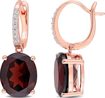 Gemstone & Diamond Oval Drop Earrings 14K