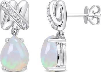 These dazzling crossover design drop earrings are crafted in lustrous 14k gold and feature pear-cut, prong-set gemstones studded with 16 round-cut, pave-set diamonds along the crossover design. Enhanced with a polished finish, these exquisite earrings are secured with butterfly closures. These vibrant earrings are a great way to glamorize your look.