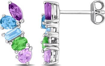 Vivid and distinctive, these gemstone earrings feature a stunning mix of oval, pear, marquise and baguette-cut gemstones. Crafted in sterling silver, the lovely arrangement forms an elegant design that radiates sophistication and charm. Perfect for adding a pop of color to any look, these earrings blend modern vibrance with timeless luxury.