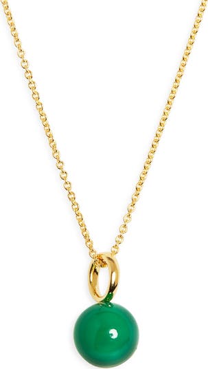 A perfectly round pendant made from a semi-precious gemstone pops with eye-catching color on this necklace that's handcrafted from sterling silver and plated in 18-karat gold.