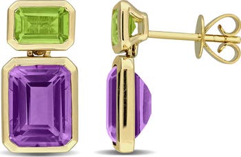 Gemstone Two-Stone Drop Earrings 10K