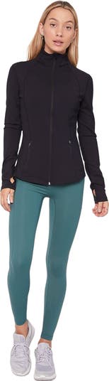 Modern zip up jacket that can be worn fitted or a bit loose fitted when sized up. Designed for the modern woman in generations X, Y, and Z. Wear it to practice, commute, errands, and other light activities. Features zipper pockets on both sides and thumbholes for coverage. Made in our breathable, 4 way stretch Cloudlux fabric.