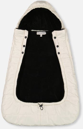 - Snap button fasteners at the top to attach to a car seat, stroller, or baby carrier