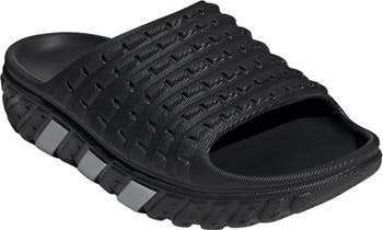 A contoured foam footbed and wide, stable base put cushioned comfort under every step in a sport slide inspired by heritage soccer cleats and designed with forward-thinking energy. The topography-inspired exterior pairs gracefully waving curves with regimented notches to wrap the look in unique patterns and distinctive textures.