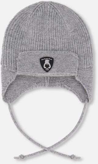 A polar fleece lining makes this beanie hat for babies an essential addition to their cold weather wardrobe. Detailed with a polar fleece lining that provides superior warmth, this knit cap features ear flaps to protect their ears, side strings, and a logo patch on the front.
