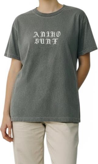 A classic crewneck tee shirt made in Los Angeles with 100% cotton. Garment dyed and printed with our East LA Gothic Logo Script. Unisex fit for both women and men.
