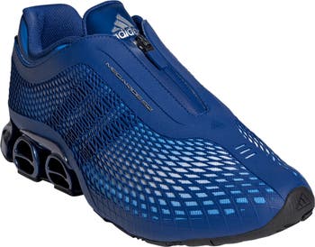 A TPU shell molded in aerodynamic geometries zips over the lace-up mesh upper of a sneaker that nods to the chunky aesthetics of the '00s and races toward a sleek, streamlined future. It sits on architectural Megaride cushioning that provides visual evidence that every step is springy and comfortable.