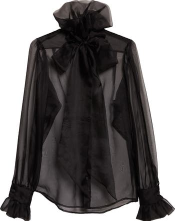 Gender Inclusive Simone Pussy Bow Sheer Silk Organza Shirt
