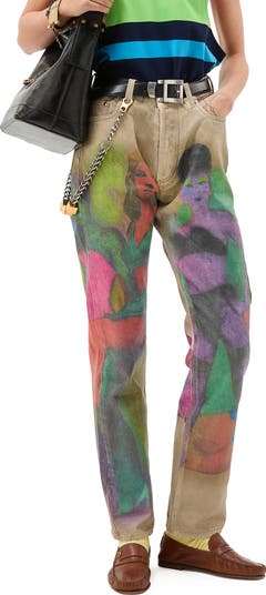 Italian-crafted and cut straight through the leg, these runway-featured jeans lean into the honest character of rigid denim. Vivid acid-toned graphics depict hand-stenciled figures true to Dario Vitalie's late-'80s vision for the collection. Signature Medusa head hardware on the back leather patch adds a small flash of polish.