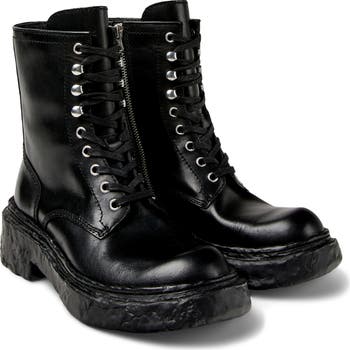 A chunky, textural sole and comfy OrthoLite® footbed ground a smooth leather combat boot secured with a gleaming side zipper for added ease.
