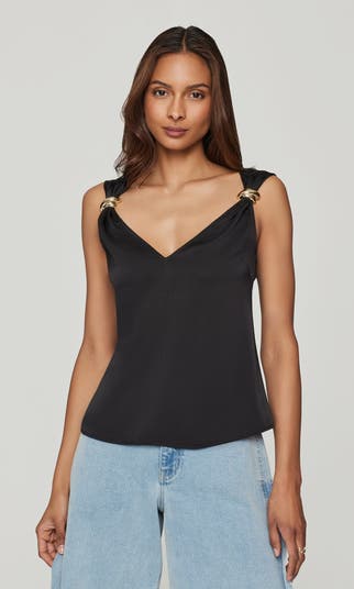 The Fawn Hammered Blouse blends soft shine with effortless drape. Featuring hammered satin, a flattering V-neckline, and statement ring straps, this top adds instant polish to denim or tailoring. Self: 98% Polyester, 2% Elastane Unlined Professional Dry Clean Relaxed Fit Length: 22 3/4" Model Size & FitModel wears: US 2/XS / UK 6 / EU 34 Model's height: 5'10″ / 178cm