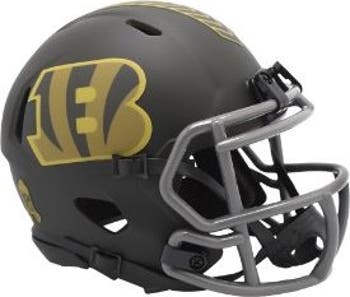 New 2025 NFL Salute to Service Speed Mini Helmets! The ultimate NFL mini speed football helmet collectible, perfect mini speed football helmets for autographs and collectors. Mini Speed Football Helmet with great graphics. Official Mini Speed Football Helmet with official team decal. ABS plastic Mini Speed Football Helmet shells with plastic facemask. Realistic interior foam padding, vinyl-leather chin strap. This is an affordable football helmet for the true fan. Size: 1/2 scale versions of football helmets. Size: 6"(L), 4�"(W), 5"(H) - (NOT FOR WEARING).
