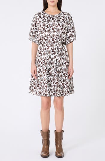 Intertwined blooms mimic embroidered designs to sweeten an all-cotton dress cinched with an optional sash.