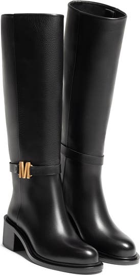 Logo hardware highlights the ankle strap of this equestrian-inspired boot shaped from smooth leather.