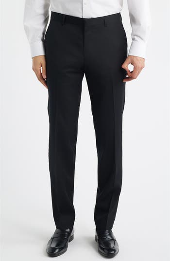 Smart and versatile, these flat-front dress pants tailored from polished virgin wool sit just below the waist and taper down the legs to bring a modern finish to any formal or semiformal look. Crisp creases and a concealed closure complement the handsomely streamlined profile.