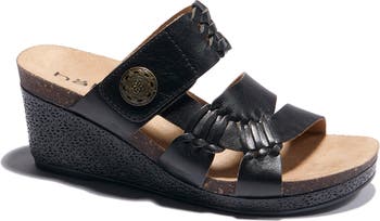 A woven design along the strappy leather upper adds artistic allure to this charming wedge sandal with a cushioned footbed to keep you moving through warm-weather days in easy comfort.