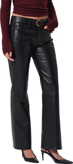 Elongating, full-length legs elevate the silhouette of these nonstretch low-rise jeans featuring a bootcut profile and leather-like coating for a fierce aesthetic.