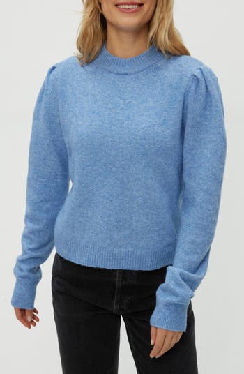 Puffed sleeves sweeten the style story of this mock-neck sweater knit from heathery yarns that tip you off to this one's supersoft feel.