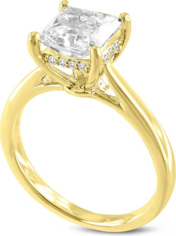 Genoveva 14K Yellow Gold Princess Cut Lab Grown Diamond Hidden Halo Engagement Ring - 2.2 Ct