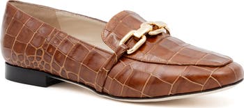 Chain-link bit hardware highlights the croc-embossed leather upper on an Italian-made loafer grounded by a foam-cushioned footbed and subtle heel.